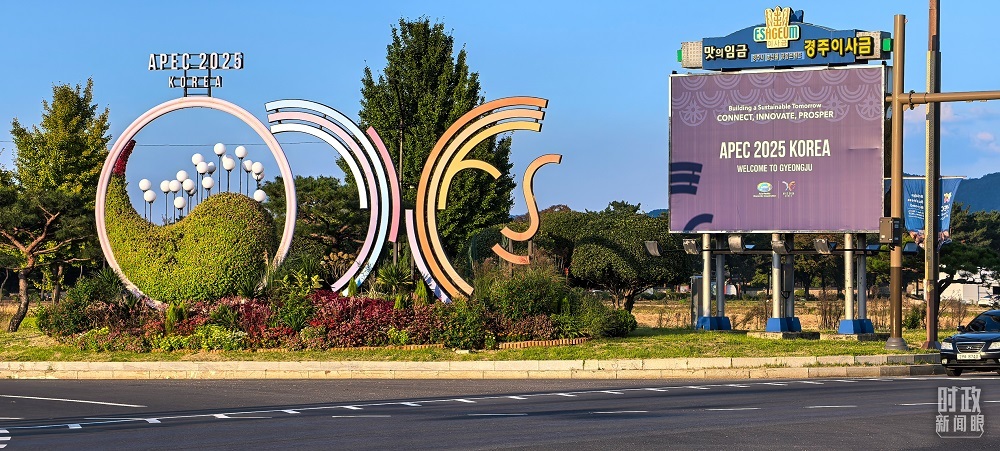 深秋時節(jié),千年古城慶州明凈如畫,街道兩側(cè)懸掛著APEC會議旗幟。亞太經(jīng)合組織(APEC)第三十二次領(lǐng)導(dǎo)人非正式會議在這里舉行。