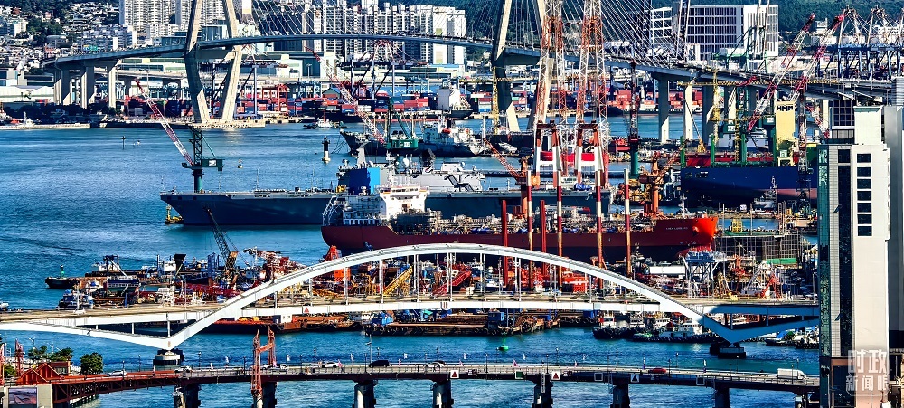 △韓國釜山繁忙的港口。